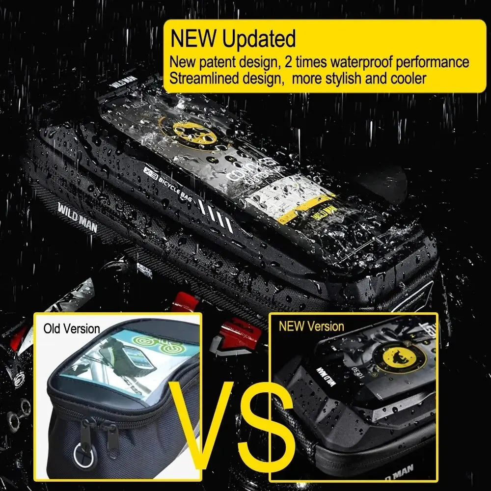 A Bolsa de Quadro Wild Man é a solução ideal para quem busca transportar objetos e utilizar o celular com segurança durante o pedal. Com estrutura rígida, à prova d'água e resistente a impactos, ela mantém seus itens protegidos mesmo em trilhas ou climas adversos.